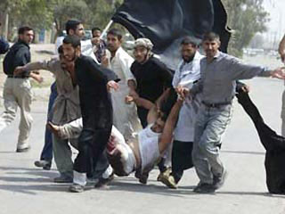 據(jù)報道,從7月29日后半夜到30日前半夜,美國在費盧杰的軍事行動就已經(jīng)奪去了13個平民的生命。此后,在費盧杰的抵抗者和美國人之間就爆發(fā)了武裝沖突,美國空軍就開始對這里的居民區(qū)實行空中打擊。美國的官方傳統(tǒng)說法是,他們打擊的是“武裝分子的藏身之地”。