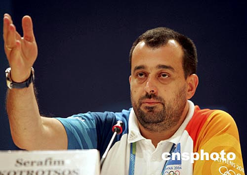 當(dāng)?shù)貢r(shí)間8月3日中午,雅典奧運(yùn)會(huì)新聞發(fā)言人Serafim Kotrotsos舉行新聞發(fā)布會(huì),并就安全保衛(wèi)、門(mén)票銷(xiāo)售以及與北京奧組委的合作等問(wèn)題回答記者提問(wèn)。中新社記者:任晨鳴