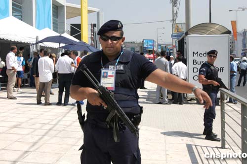 當(dāng)?shù)貢r間8月6日下午,雅典奧運會的所有場館均提高了安保防范等級,在原有的警察防線外增加了荷槍實彈的軍警,以防恐怖襲擊。中新社記者:任晨鳴