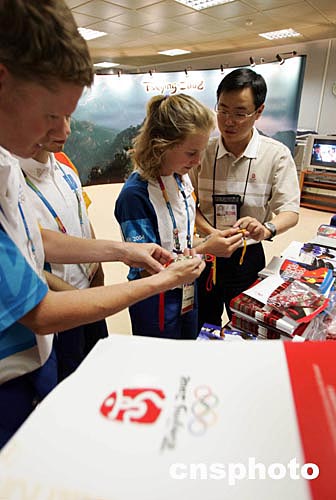 另一位叫威廉姆斯的女孩用很標(biāo)準(zhǔn)的漢語說:“北京很好,我喜歡北京!痹瓉,兩年前威廉姆斯曾到中國工作四個(gè)月,對中國留下了深刻的印象。她對北京奧組委提供的中國結(jié)和中國京劇臉譜愛不釋手。