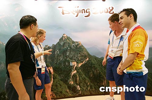 這個(gè)占地七十多平米的大廳設(shè)在雅典奧運(yùn)會主新聞中心的一層。一幅巨大的長城圖片成為大廳的主要裝飾,也吸引了眾多參觀者的眼球。本社記者的意外闖入,北京奧運(yùn)會組委會新聞宣傳部項(xiàng)目專家陳平笑言:“來得早,不如來得巧。北京奧組委的這個(gè)展覽大廳今天剛剛開張,還沒來得及向媒體透露!彼Q,北京奧組委開辦這個(gè)展覽,正是欲借雅典奧運(yùn)的“東風(fēng)”,以達(dá)到宣傳北京和北京奧運(yùn)會的目的。今天開辦的展覽將與本屆奧運(yùn)會同步結(jié)束。