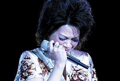 比較讓觀(guān)眾激動(dòng)的環(huán)節(jié)是最后的點(diǎn)唱部分。《出塞曲》、《忘不了》等觀(guān)眾網(wǎng)上投票選出的蔡琴最經(jīng)典的歌曲被現(xiàn)場(chǎng)演繹。蔡琴還拿出了貼滿(mǎn)黃金的金話(huà)筒,表示:“沒(méi)有實(shí)力的人,是沒(méi)資格站在這個(gè)話(huà)筒前面的!”十點(diǎn)鐘左右,蔡琴唱了五遍《恰似你的溫柔》,演唱會(huì)在她的哭泣中結(jié)束。(記者郝曉楠)