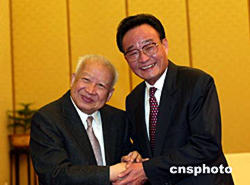 吳邦國對(duì)西哈努克國王和柬埔寨政府一貫奉行一個(gè)中國政策,在臺(tái)灣、西藏等重大問題上堅(jiān)定支持中國政府的立場表示高度贊賞和衷心感謝。