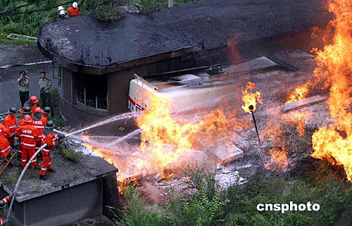新華網(wǎng)今天下午發(fā)出的消息說,該校北墻邊的一個(gè)油庫(kù)在下午一時(shí)五十分左右起火,目前火勢(shì)尚未得到控制,有無人員傷亡還不清楚。