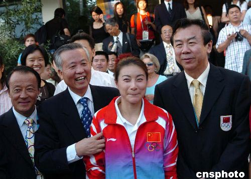 中國國家體育總局、中國奧委會、中國奧運代表團負責人王鈞、李富榮、何慧嫻、崔大林等,運動員代表田亮、郭晶晶等跳水隊四人、女子曲棍球隊隊員八人與使館及華僑華人代表同舉杯。中國代表團與各方還互贈了紀念品。
