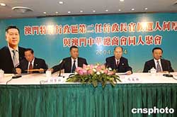 十四日,澳門特別行政區(qū)第二任行政長官候選人何厚鏵展開了為期二周的競選活動(dòng),當(dāng)天他分別出席了澳門中華總商會(huì)及澳門工會(huì)聯(lián)合會(huì)的座談會(huì),了解他們對(duì)未來五年特區(qū)政府施政及澳門整體發(fā)展的意見。澳門中華總商會(huì)會(huì)長、全國政協(xié)副主席馬萬祺主持了商會(huì)的座談會(huì)。作者:梁永強(qiáng)