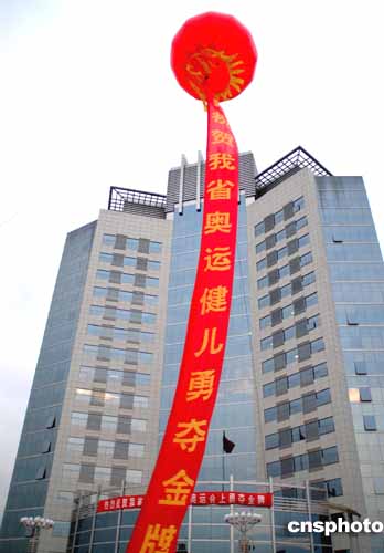 在八月十四日下午結(jié)束的雅典奧運會女子十米氣步槍決賽中,山東女射擊運動員杜麗奪得本屆奧運會首枚金牌。杜麗的母校山東省競技體育運動學校的師生扎制彩車在濟南街頭游行慶祝。作者:宋衛(wèi)東
