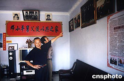 鄧小平百年誕辰前夕,鄧小平的農(nóng)民表弟淡文全特意在四川廣安的家中布置一個(gè)簡(jiǎn)易展示板供游人參觀。圖為淡文全在介紹有關(guān)情況。中新社記者:肖龍聯(lián)