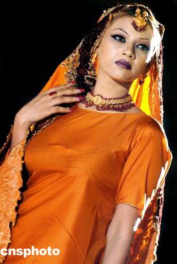 8月15日,在慶祝巴基斯坦國(guó)慶57周年活動(dòng)上,模特演繹巴基斯坦頂尖時(shí)裝設(shè)計(jì)師Amna Malik的作品。