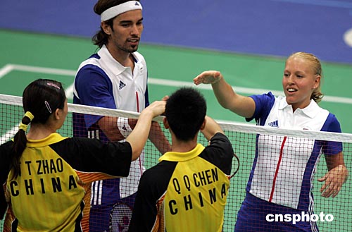 英國(guó)參加雅典奧運(yùn)會(huì)羽毛球混合雙打的羅伯遜、埃姆斯,當(dāng)?shù)貢r(shí)間8月16日以2比0選手戰(zhàn)勝中國(guó)選手陳其遒、趙婷婷,進(jìn)入前四名。