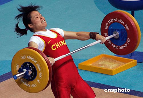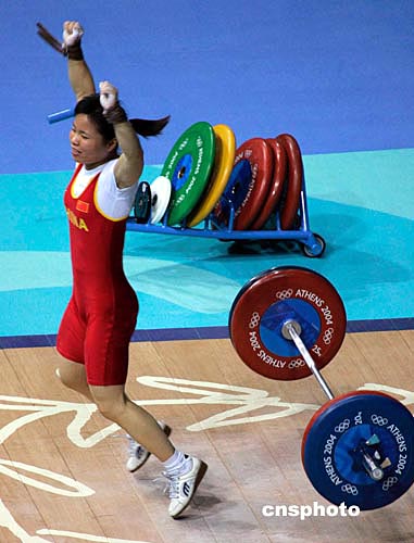 當(dāng)?shù)貢r(shí)間8月16日下午,中國(guó)女子舉重名將陳艷青在雅典奧運(yùn)女子58公斤級(jí)舉重比賽中獲得冠軍,為中國(guó)代表團(tuán)奪得第七枚金牌。作者:張煒