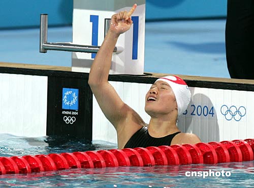 當(dāng)?shù)貢r(shí)間8月16日,中國(guó)選手羅雪娟以1分06秒64的成績(jī)戰(zhàn)勝了澳大利亞選手瓊斯,打破奧運(yùn)會(huì)紀(jì)錄,奪得雅典奧運(yùn)會(huì)女子100米蛙泳金牌,再次衛(wèi)冕了世界女蛙王的頭銜。這是中國(guó)代表團(tuán)在本屆奧運(yùn)會(huì)上獲得的第八塊金牌。 中新社記者:任晨鳴