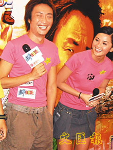 談到二人著情侶裝,阿Sa笑指是日前一齊做完宣傳去買的,且是件女裝衫,阿Sa還笑謂大家著了上身,身材一樣好“平”。