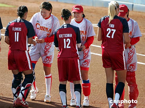 美國女壘在首局比賽中就有出色表現(xiàn)。先是成功地上到一壘,隨后中國隊投手投出四個壞球保送對方一名隊員又上壘成功。在形成關鍵的三球兩擊時,中國隊投手再投出一個壞球,美國隊形成三壘都有人的有利局面。隨后美國隊隊員利用一次漂亮的擊打,兩個隊員回到本壘得分,取得三比零領先。
