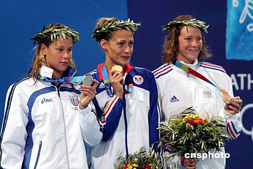 當(dāng)?shù)貢r間八月十七日晚,羅馬尼亞選手卡美麗婭獲得雅典奧運(yùn)女子二百米自由泳金牌。中新社記者:毛建軍