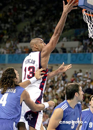 當(dāng)?shù)貢r(shí)間8月17日晚,東道主希臘隊(duì)在雅典奧運(yùn)會(huì)籃球比賽中竭盡全力與美國“夢六隊(duì)”展開激戰(zhàn),幾乎讓不可一世的美國隊(duì)再遭敗績。中新社記者:任晨鳴
