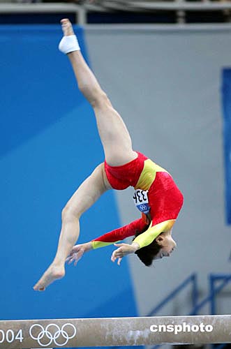 當(dāng)?shù)貢r間八月十九日晚,中國體操選手張楠獲得雅典奧運女子體操全能銅牌。中新社記者:毛建軍