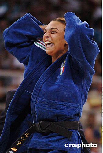 圖為在當(dāng)?shù)貢r(shí)間8月19日舉行的女子次重量級(jí)78公斤級(jí)比賽中,獲得銅牌的意大利選手Lucia Morico非常興奮。