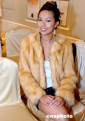 應(yīng)屆香港小姐朱慧敏,日前在香港一記者招待會上盡顯美態(tài),為即將參加2005年國際華裔小姐競選的徐子珊造勢助陣。屆時世界20個城市參加競選的佳麗,將于明年1月7日抵達(dá)香港參加活動。中新社記者 宋吉河 攝