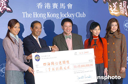 香港賽馬界包括市民﹑馬迷和員工透過馬會(huì)的多個(gè)渠道慷慨解囊﹐為南亞地震海嘯賑災(zāi)捐款3500萬港元。中新社記者:趙振清