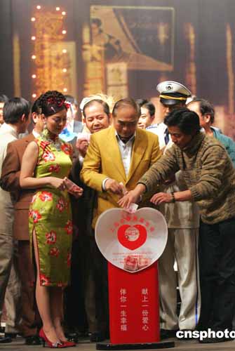 一月六日晚,由劉曉慶領(lǐng)銜主演的大型歌舞話劇《金大班的最后一夜》在上海上演。演出之后,劉曉慶和演藝人員向海嘯災(zāi)區(qū)捐款。作者:潘索菲