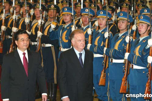 胡錦濤舉行儀式歡迎葡萄牙共和國總統(tǒng)若熱·桑帕約訪華。作者:滿會(huì)喬