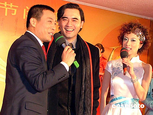 第七屆中國長春電影節(jié)1月12日晚在長春落幕,眾多明星出席當(dāng)晚的頒獎晚會。圖為擔(dān)任頒獎嘉賓的香港影星趙文瑄(中)和主持人。作者:吳兆飛