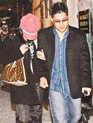 約六時十五分,二人從發(fā)型屋后門離開,不過頭戴鴨舌帽的郭晶晶赫然發(fā)覺有記者在后門守候,仿徨不知所措,隨即慣性地低下頭,不斷問男友:“怎么辦?”由于一直垂頭兼肯正面示人,進(jìn)退兩難的郭晶晶又再向男友求救:“我看不到路。”在旁的霍啟剛隨即拉著女友,二人十指緊扣,直至上車都沒有放開手。