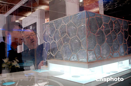 “第三屆北京國(guó)際體育基礎(chǔ)設(shè)施和場(chǎng)館技術(shù)展”一月十八日在北京舉行,由中建國(guó)際設(shè)計(jì)的國(guó)家游泳中心“水立方”展示時(shí),引起外國(guó)專家注意。目前,“水立方”完成賽時(shí)全部施工圖設(shè)計(jì),工程已經(jīng)“浮出”地面。中新社記者:張宇