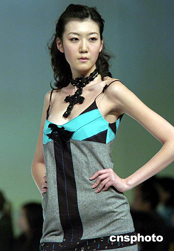 1月19日,香港會展中心舉行的“香港時裝節(jié)秋冬系列2005”上,模特演繹“獨家時裝表演”專場設(shè)計師秋冬系列服飾。作者:洪少葵