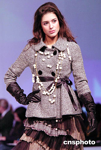 1月19日,香港會(huì)展中心舉行的“香港時(shí)裝節(jié)秋冬系列2005”上,模特在T型舞臺(tái)演繹“獨(dú)家時(shí)裝表演”專場(chǎng)設(shè)計(jì)師作品。作者:洪少葵