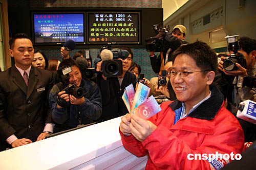 臺(tái)北一O一大樓觀景臺(tái)今日開(kāi)始試運(yùn)營(yíng),前一百零一位參觀者可獲得禮品。中新社記者:邢利宇