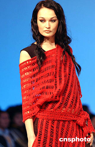 1月21日,香港時裝節(jié)上演第二場“國際時裝設(shè)計師表演”,模特展示澳洲時裝設(shè)計師Josephine Nathan的作品。