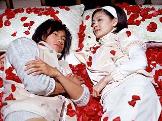 但也因?yàn)椴皇欤螡?rùn)東與大S幾乎沒話講,還好何潤(rùn)東之前與藍(lán)正龍合作過“中華英雄”,兩人還常私下相約一起去打撞球,提到藍(lán)正龍,大S也跟著話變多,漸漸地,藍(lán)正龍竟成為兩人的共通話題。拍過多部戲,何潤(rùn)東在戲中難免應(yīng)劇情需要有一些親熱的鏡頭或床戲,但唯獨(dú)這一次與大S拍床戲,令他既尷尬又痛苦,原來(lái),拍攝這場(chǎng)床戲的前一天,何潤(rùn)東才和藍(lán)正龍拍完“中華英雄”,面對(duì)好友女友,何潤(rùn)東心中難免有顧忌,即使和大S躺在同一張床上,也幾乎不敢碰對(duì)方,偏偏還撒了一床的玫瑰花,宛如早期電視劇的床戲,何潤(rùn)東苦笑說:“沒辦法,朋友妻不可戲啊。”