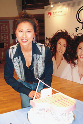 中新網(wǎng)1月26日電 據(jù)文匯報(bào)報(bào)道,葉倩文與香港管弦樂團(tuán)將于三月十七至十九日假紅館舉行“港樂.葉蒨文Live”演唱會,昨日特地在香港文化中心音樂廳舉行招待會,F(xiàn)場有切蛋糕吹蠟燭儀式,期間有枝蠟燭突然火光猛烈,Sally連忙俯低身吹熄,卻不料春光乍泄。