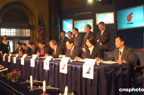 根據(jù)雙方當天在美國商務部簽署的框架協(xié)議,中國國航、東航、南航、海南航空、廈門航空、上海航空將從波音公司訂購六十架波音七E七飛機,按照平均目錄價格計算,此協(xié)議總價值七十二億美元。這批飛機將從二00八年開始陸續(xù)交付使用。