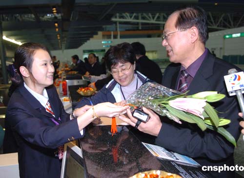 看好將來兩岸航線,大陸與臺灣共計十二家航空公司爭先參與今年包機直航,并盡全力讓這難得的四十八次空中旅行走得完滿。兩岸同業(yè)為此做出了周詳規(guī)劃,大陸國航空姐將著美麗的淡紫色旗袍,為臺胞提供地道的貢丸湯、木瓜牛奶等臺式餐飲;臺灣長榮推出了譚府獅子頭、八寶鴨等北京、上海菜,并為旅客準備了象征吉祥如意的麒麟吊飾和機長簽名的“首航封”。