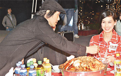 周星馳主演的電影《功夫》在各地上映均獲佳績,昨晚在奧海城露天廣場筵開八十六席名為“功夫千人群雄宴”的盆菜宴招待觀眾,好讓觀眾與他拉近距離,及與片中演員歡聚一番。而每席盆菜約花費(fèi)八百多元。