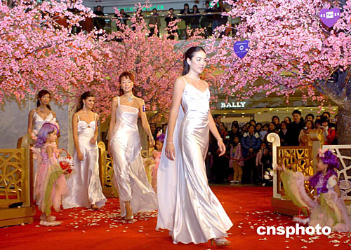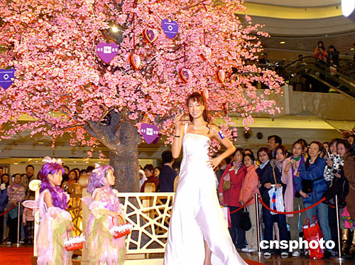 香港六位名模2日來到香港時(shí)代廣場二樓剛剛啟動(dòng)的“閃爍動(dòng)人桃花園”﹐享受春天的自然風(fēng)光﹐營造情人節(jié)氣氛。中新社記者:趙振清