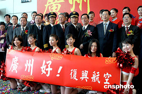 到達(dá)廣州后,復(fù)興航空的空姐將在首航典禮上當(dāng)起拉拉隊(duì)炒熱氣氛。據(jù)知,四日臺(tái)灣飛大陸的只有復(fù)興航空臺(tái)北─廣州,廣州─臺(tái)北班機(jī)。早上七時(shí)二十分起飛,九時(shí)抵廣州。