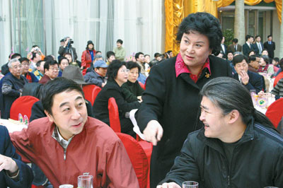 昨天,華彬大廈一層的大廳里,人聲鼎沸,笑聲不斷。在這里人們不僅見到劉蘭芳、馮鞏、李金斗、李文華、常寶華、孟繁貴等曲藝界的大腕們,同時也見到了陳佩斯、朱時茂、劉曉慶、劉歡、梁天等這些看上去原本沒有關(guān)系的演藝界明星們。聯(lián)誼會的當(dāng)家主持是中國曲藝家協(xié)會分黨組書記、相聲名家姜昆以及相聲演員孟繁貴。連主持人都是相聲演員,您說這樣的會議能不熱鬧?上面抖著“包袱”主持會議,底下你一言我一語地接話茬兒,聯(lián)誼會始終洋溢著笑聲和掌聲。