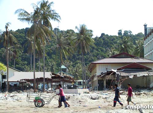 圖:泰國海嘯重災(zāi)區(qū)需清理七千噸垃圾