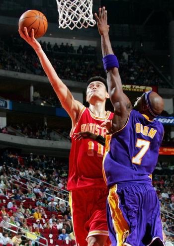 第二節(jié)比賽開始后,湖人打出一波攻擊,將比分差距縮小到37-34。不過關(guān)鍵時候姚明再次發(fā)威,連續(xù)得分將比分差距再次拉大,在半場結(jié)束時以50比39領(lǐng)先。