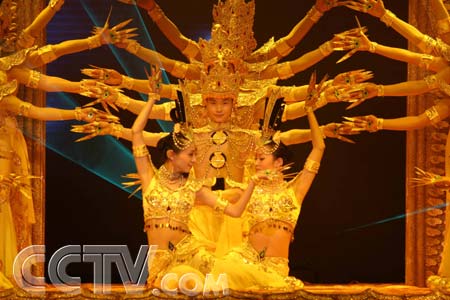 據(jù)該團(tuán)領(lǐng)隊(duì)介紹,這是他們繼雅典版《千手觀(guān)音》之后,新改編的第三版,在動(dòng)作編排上加強(qiáng)了舞蹈動(dòng)作的質(zhì)感,增加了千手千眼的變換展示和觀(guān)音將愛(ài)灑向人間的舞蹈造型,還特別編排了“拜年的動(dòng)作”,其中一個(gè)造型取名為“盛世開(kāi)屏”,希望借此代表中國(guó)6000萬(wàn)殘疾人給觀(guān)眾帶去美好的祝福。