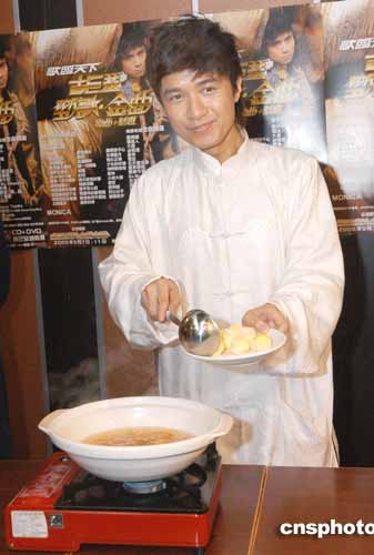 歌星古巨基2月8日在香港出席其最新專輯“勁歌金曲新曲+精選”白金銷量祝捷會,他親自制作“黃金元宵”,令祝捷會充滿過年氣氛。作者:鄧慶樂