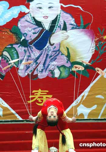 歡度新春佳節(jié)之際,北京眾多廟會各種精彩的文化活動吸引市民游客觀賞,二月十日在東岳廟春節(jié)文化廟會上,雜技團小演員表演的“彩蝶紛飛”吸引游人觀看。作者:錢興強