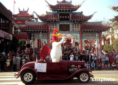 中新社洛杉磯二月十二日電(記者賈國榮) 一年一度華埠金龍大游行,雞年又逢一百零六屆,洛杉磯市長今天盛情邀請各族裔民眾歡聚新春唐人街。