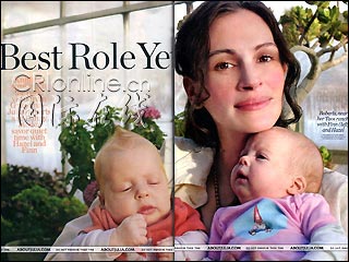 懷孕期間,朱莉亞·羅伯茨仍在堅(jiān)持拍戲。2004年底,有她參演的兩部電影同時(shí)在影院上映,分別是《十二羅漢》和《偷心》。