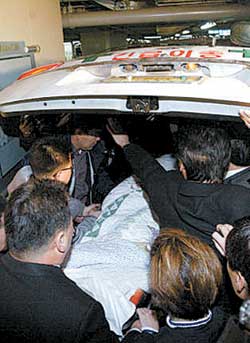根據(jù)警方調查,李恩珠有兩次自殺行為。因為在李恩珠的尸體上發(fā)現(xiàn)李恩珠的左手腕處有刀傷痕跡,而且床單中有大量血跡。因此警方判斷有可能是李恩珠在用刀自殺未成之后才用腰帶上吊自殺。目前李恩珠的遺體已被送往醫(yī)院進行尸檢。