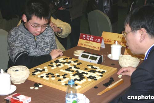 今天上午,在簡短的開幕式后,比賽正式拉開帷幕。結(jié)果,聶衛(wèi)平最小的徒弟“小胖”古靈益執(zhí)黑在與師傅的對決中最先告捷,由于盤面不足,聶衛(wèi)平以超時告負,再次印證了古靈益作為“九段高手克星”的名號。朱元豪二段爆冷將邵偉剛九段挑下馬,首屆“西南王”楊一五段以一又四分之一子戰(zhàn)勝第二屆“西南王”古力七段,俞斌、王磊、王堯、周鶴洋、王煜輝分別戰(zhàn)勝對手晉級八強。